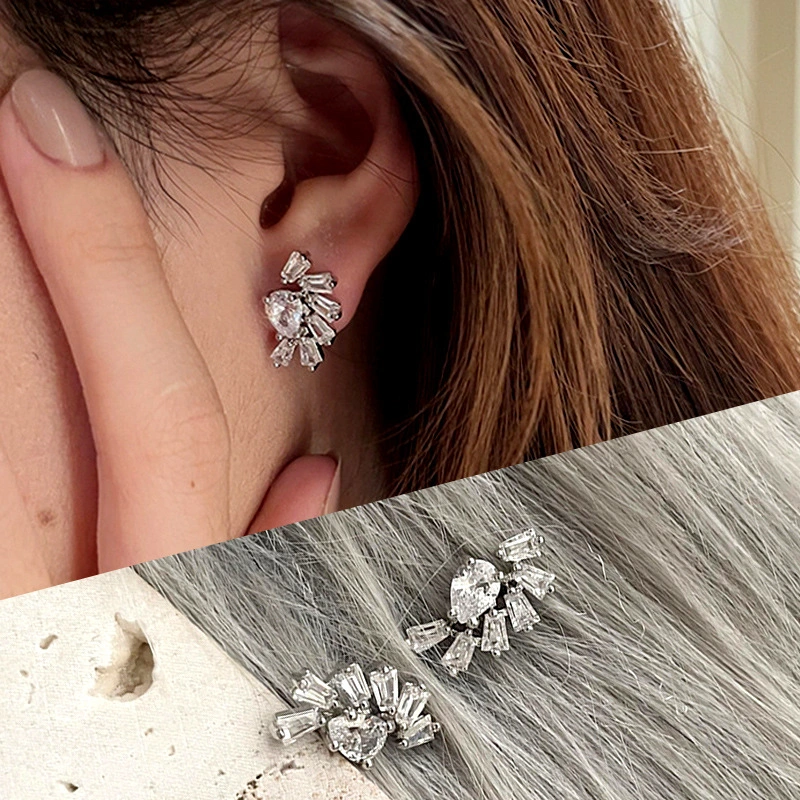 Boucles d'oreilles coréennes exquises en micro-incrusté de zircon, super brillantes, polyvalentes au quotidien, boucles d'oreilles de luxe haut de gamme légères fabricant source
