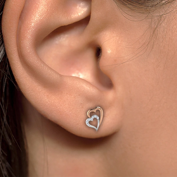 Diffusion en direct des nouvelles boucles d'oreilles en forme de cœur, boucles d'oreilles cœur à cœur bicolores plaquées cuivre, boucles d'oreilles cadeau pour amoureux