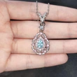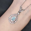 Diffusion en direct du même style de collier pour femme en forme de poire avec micro-incrustations de diamants roses et de zircons bleu clair
