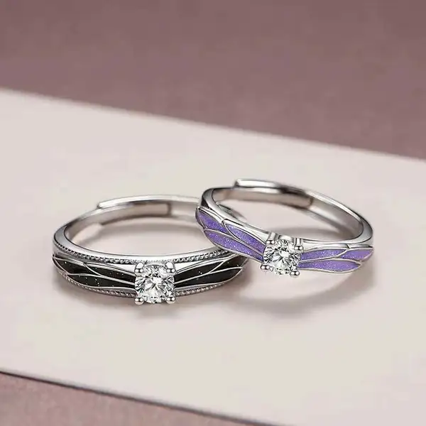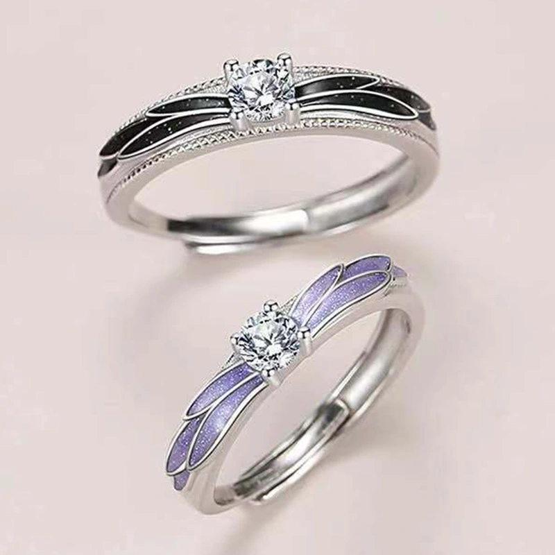 Diffusion en direct du nouveau créneau des ailes d'ange couple anneau ouvert cadeau romantique de la Saint-Valentin