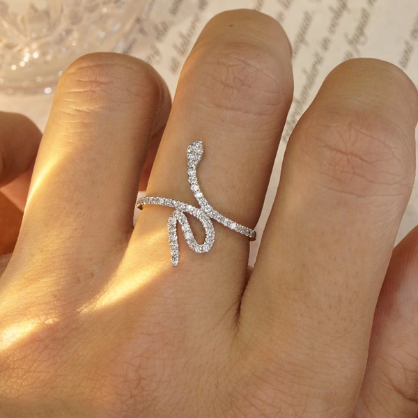 Diffusion en direct d'une robe de luxe légère avec une bague de personnalité en forme d'animal serpent, bijoux populaires et tendance