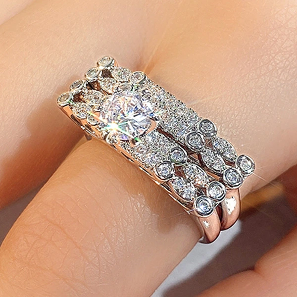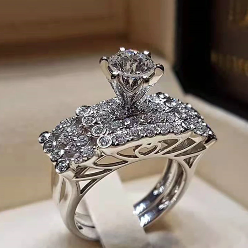 Ensemble de bagues pour femmes le plus vendu, exagéré et luxueux, bijoux de célébration d'anniversaire de luxe léger haut de gamme