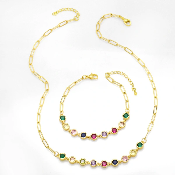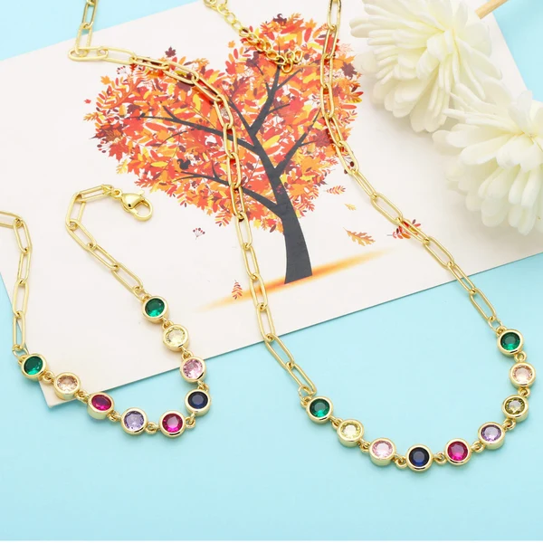 Ensemble de bijoux en solde pour femmes, style européen et américain, personnalité hip-hop, collier et bracelet en zircon coloré, nkb422