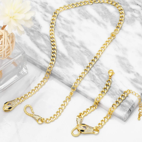 Ensemble de bracelets et colliers à boucle serpent exagérée, style européen et américain, tendance, hip-hop, rétro, chaîne de clavicule, pour hommes et femmes, nkb077