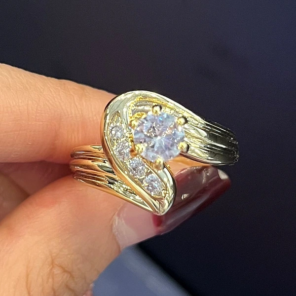 Bague classique à quatre griffes imitation zircon micro-incrustée pour femme, bague de fiançailles à bras torsadé bicolore à double rangée