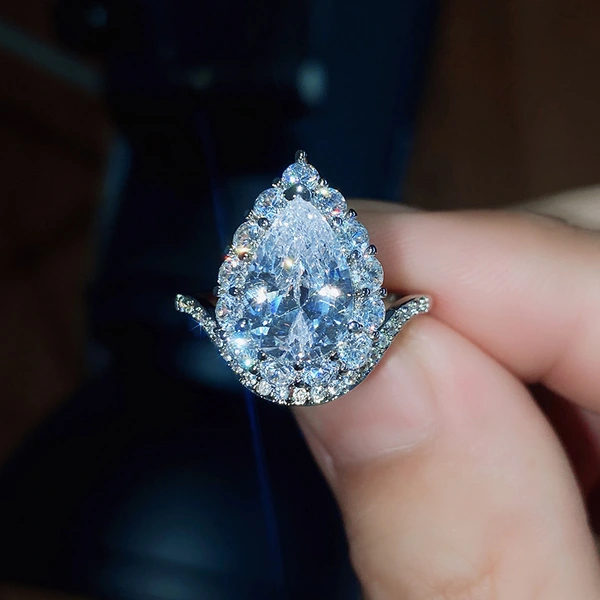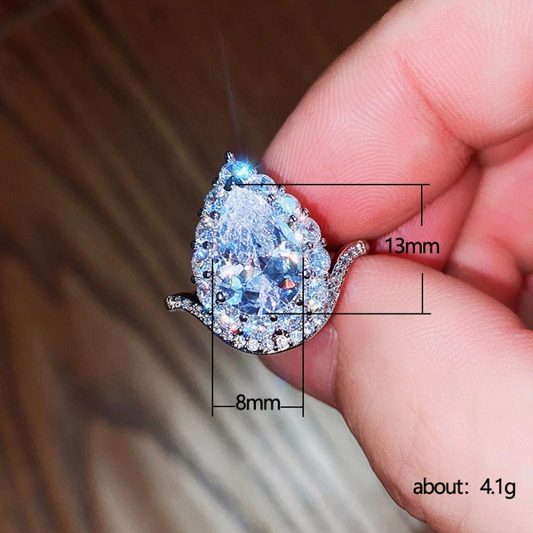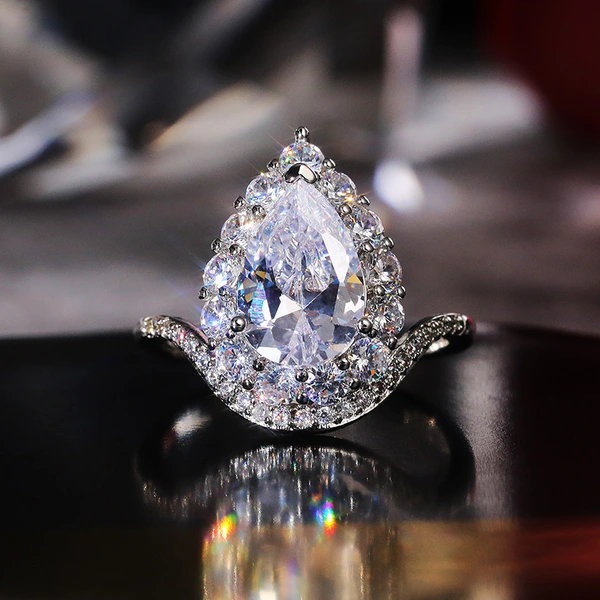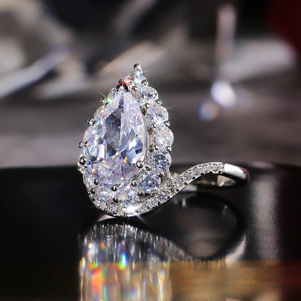 Fourniture spéciale de bijoux européens et américains, bague simple et créative en forme de poire en forme de larme pour femme, bague en zircon AAA incrustée