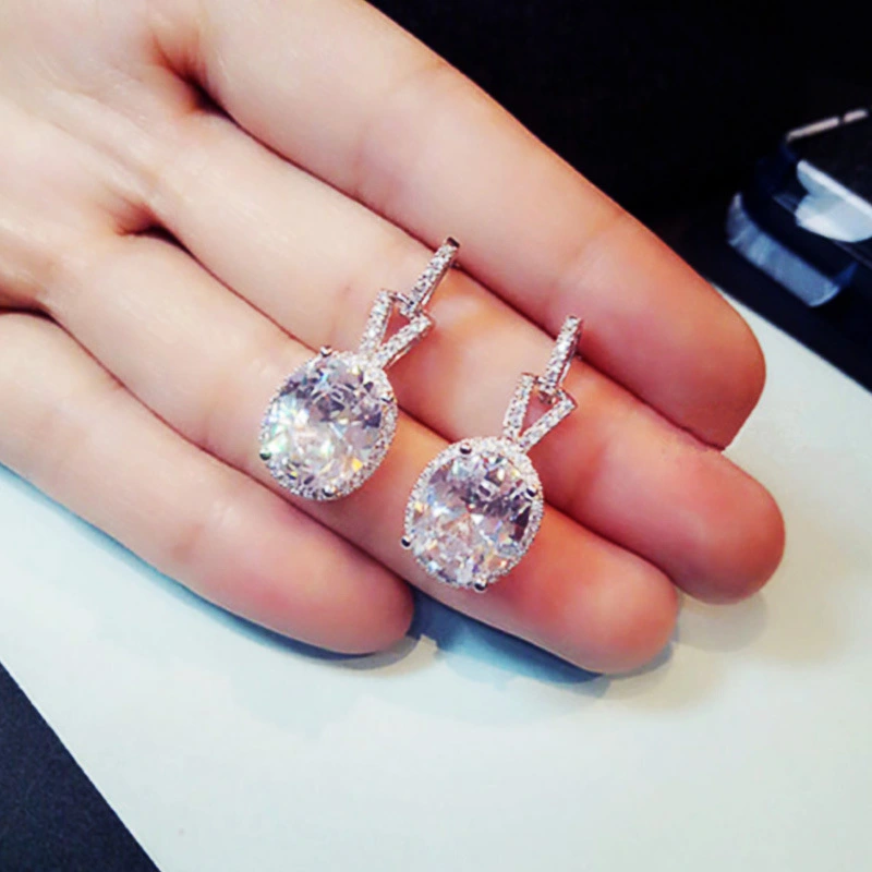 Le commerce électronique fournit des boucles d'oreilles ovales en zircon et diamant populaires en Europe et en Amérique pour les boucles d'oreilles de fiançailles pour femmes