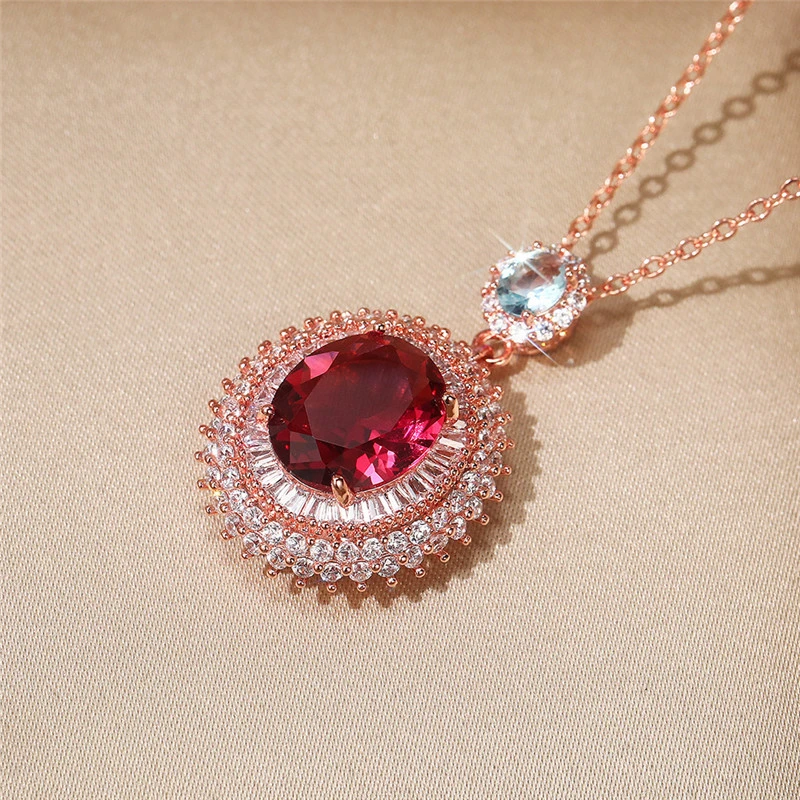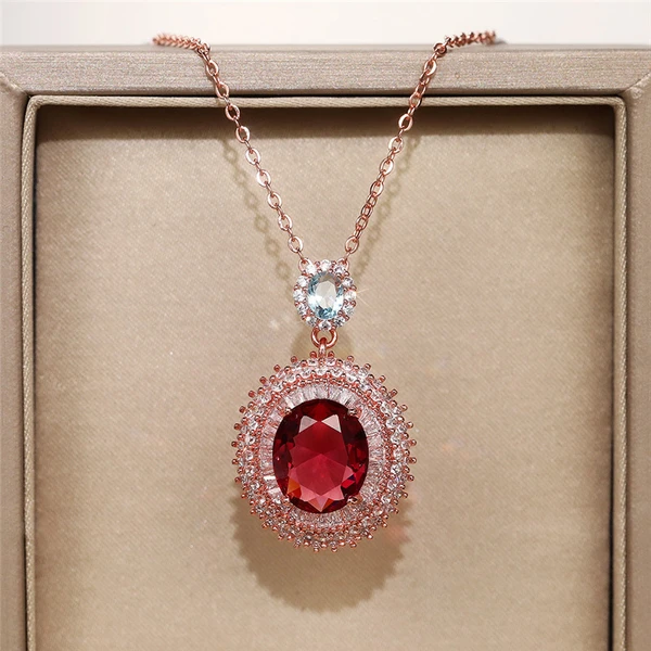 Les fabricants fournissent des colliers en rubis simulés européens et américains, des colliers pendentifs de séries de pierres précieuses colorées à la mode
