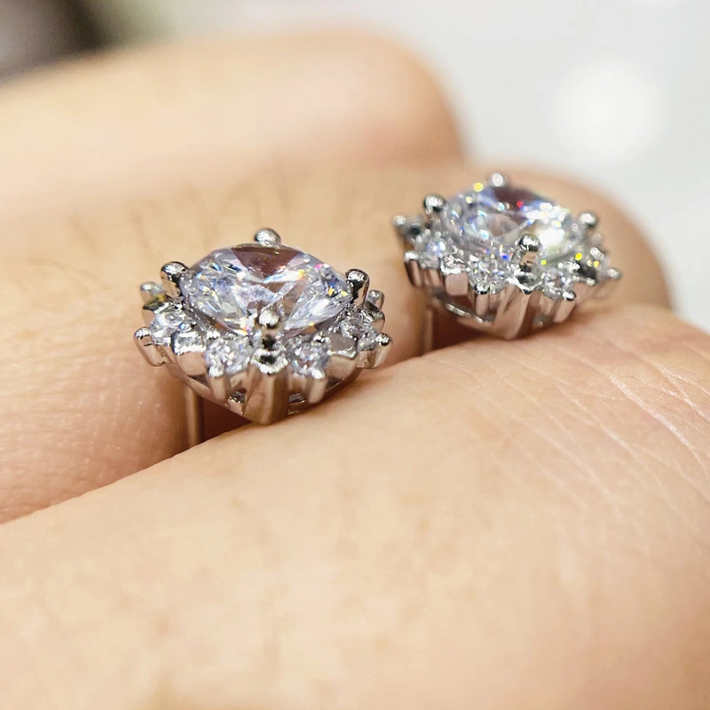 Boucles d'oreilles coréennes élégantes et élégantes, mélange et assortiment de boucles d'oreilles ovales micro-incrustées de zircons scintillants, vente directe d'usine