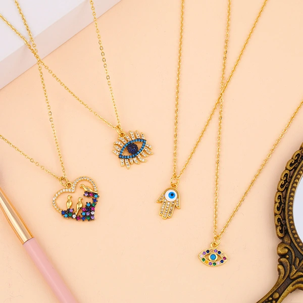 Liquidation 2023 accessoires bijoux européens et américains en gros collier main de Fatima collier œil du diable nkq45
