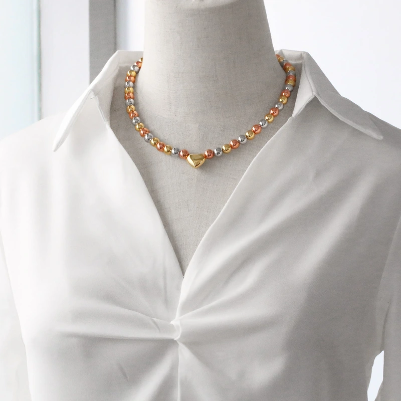 Nouveau collier de perles de niche haut de gamme hip-hop, bracelet cœur d'amour, chaîne de clavicule nkb881