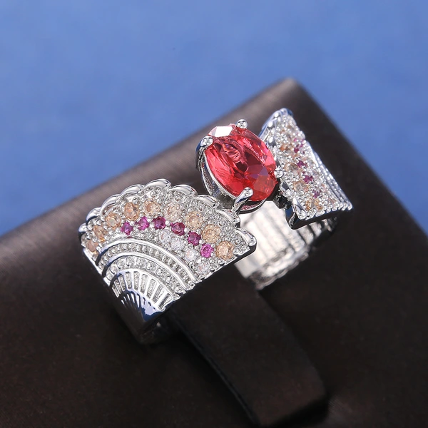 Bague de luxe européenne et américaine, bague en zircon œil de cheval à la mode, bague d'index à design creux multicouche