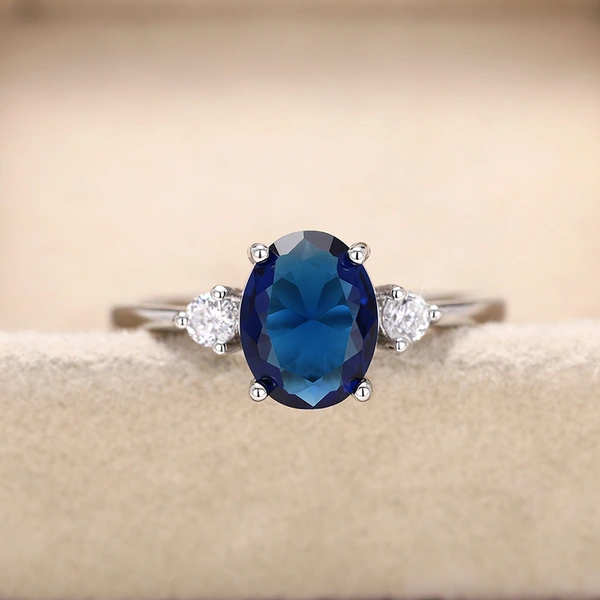 Nouveaux bijoux très populaires, versions japonaise et coréenne, imitation pierre précieuse bleue en forme d'œuf, bague et bracelet au tempérament noble