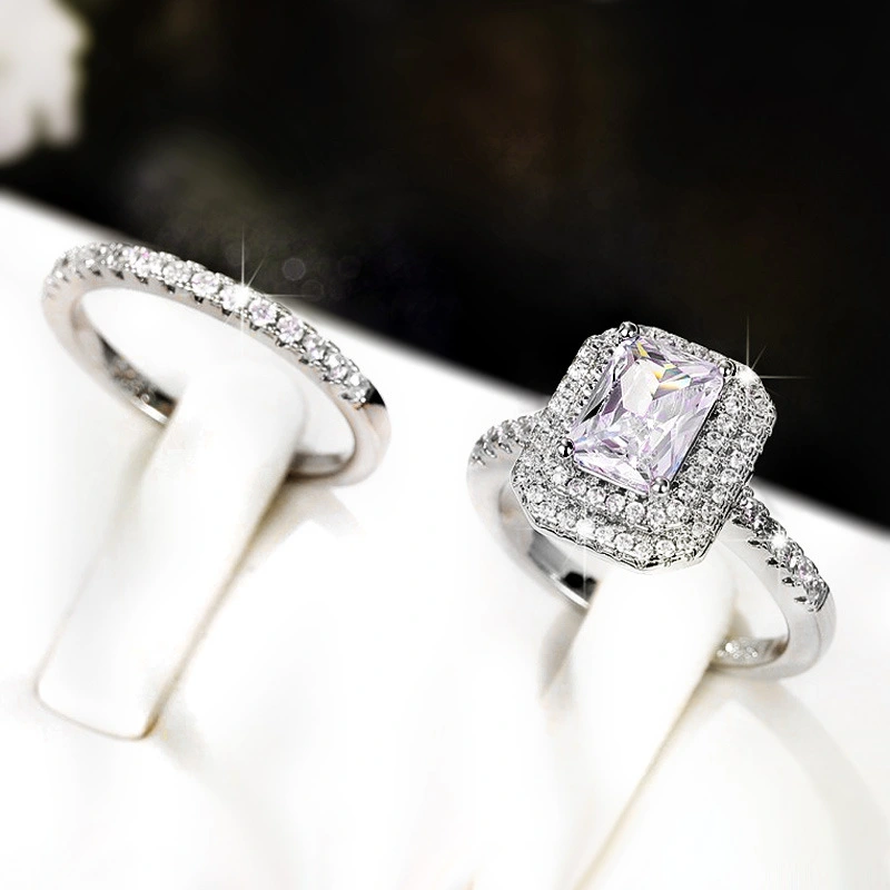 Bague de fiançailles princesse carrée, style européen et américain, incrustée de zircons, bijoux pour femmes