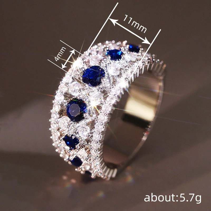Bague de luxe européenne et américaine, bague en zircon œil de cheval à la mode, bague d'index à design creux multicouche