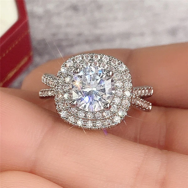 nouvelle bague en zircon creux croix quatre griffes design de mode proposition bague de mariage cadeau d'anniversaire bague
