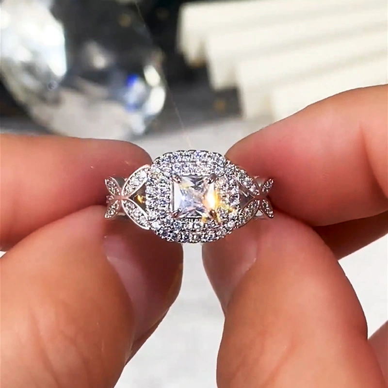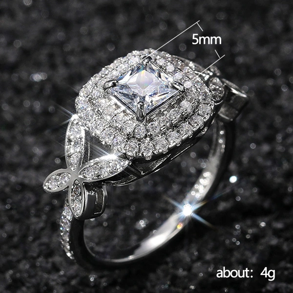 Bague de fiançailles princesse carrée, style européen et américain, incrustée de zircons, bijoux pour femmes