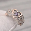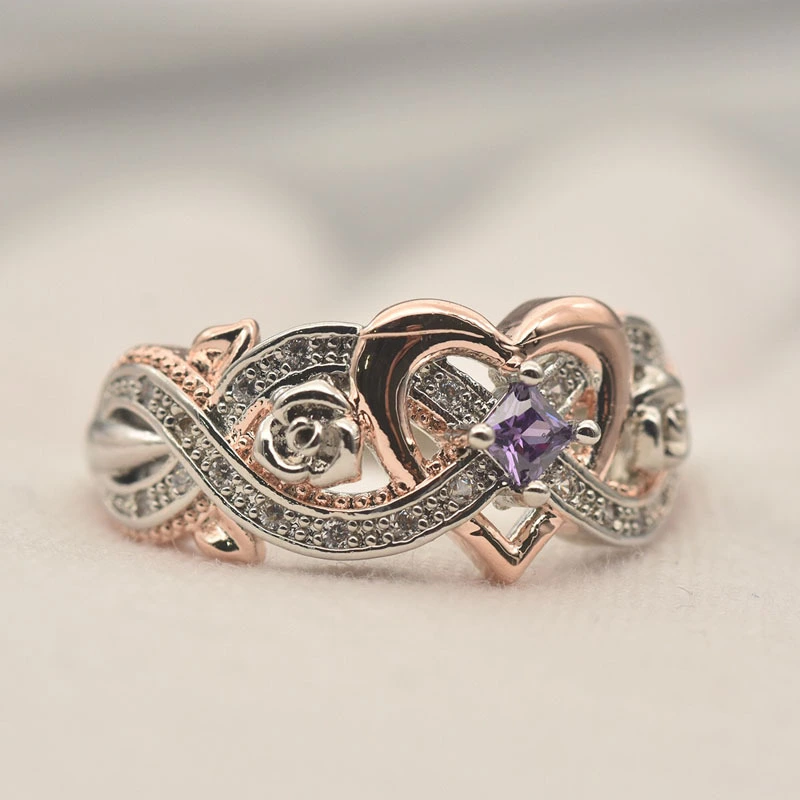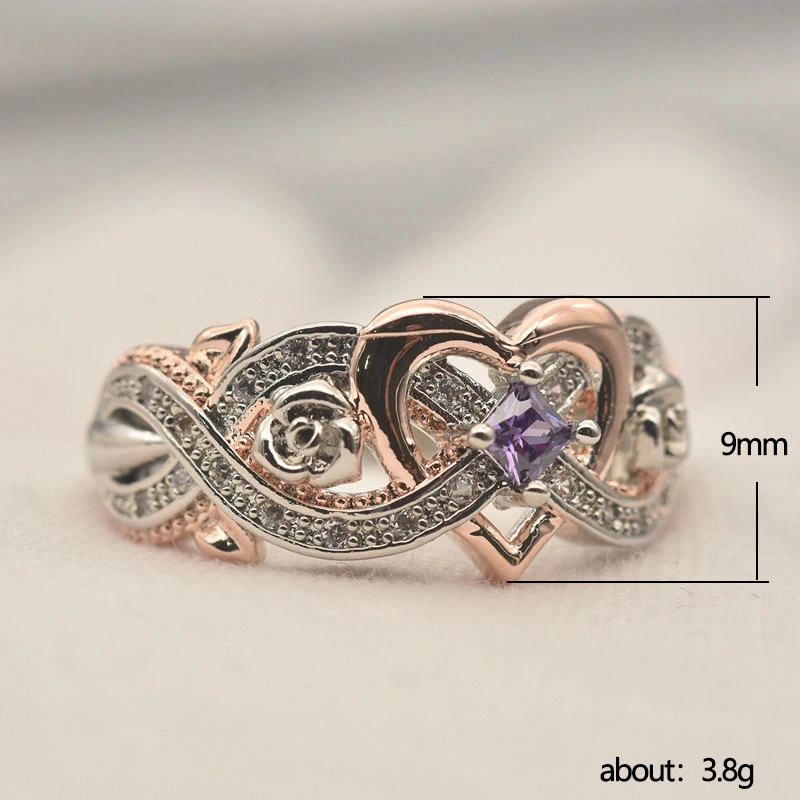 Nouvelle bague princesse rose carrée en diamant, bague européenne et américaine en forme de cœur en or rose avec zircon bicolore