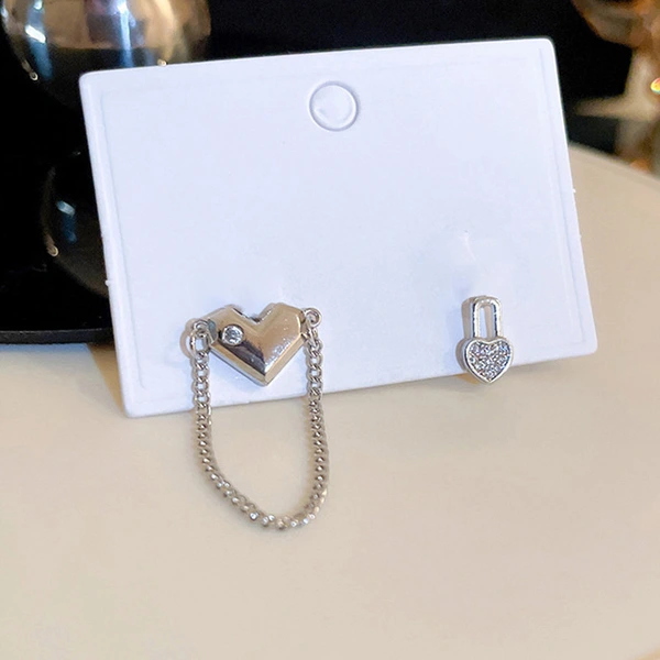 nouvelles boucles d'oreilles tendance en chaîne de cœur, design cool et asymétrique, petites boucles d'oreilles en cœur creux