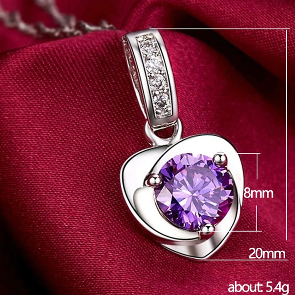 Pendentif en forme de cœur en cristal violet tendance pour femme, collier d'amour doux pour femme, collier cadeau d'anniversaire de mariage