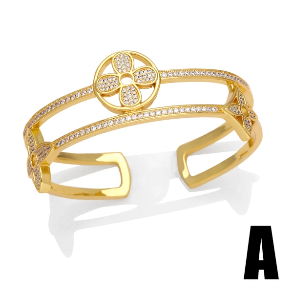 Bracelet en or véritable plaqué cuivre, entièrement en zirconium, 26 lettres anglaises, bijoux ajustables, brm62