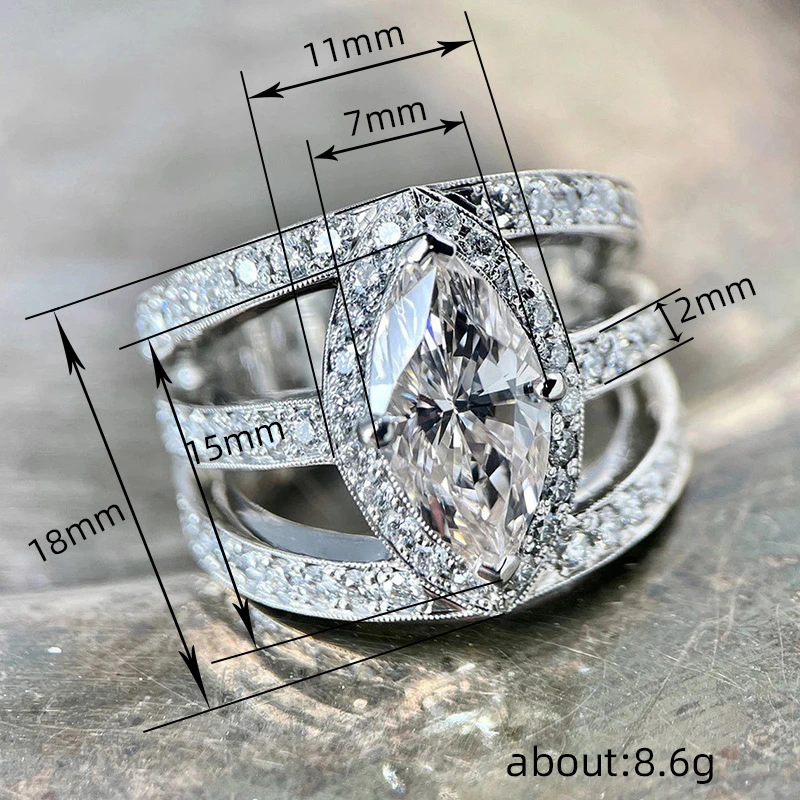Shopee vente chaude nouvelle bague en zircon œil de cheval trois couches creuses luxe index bague fête de la mode européenne et américaine