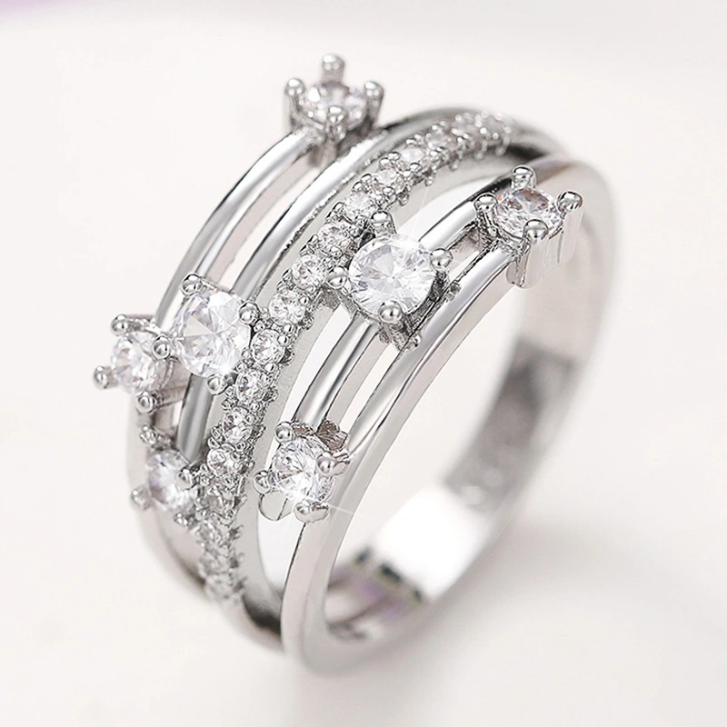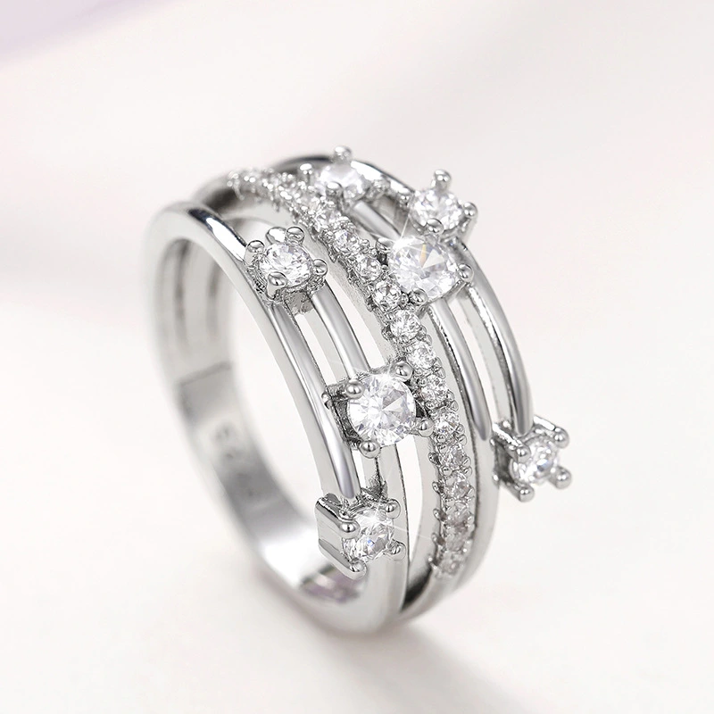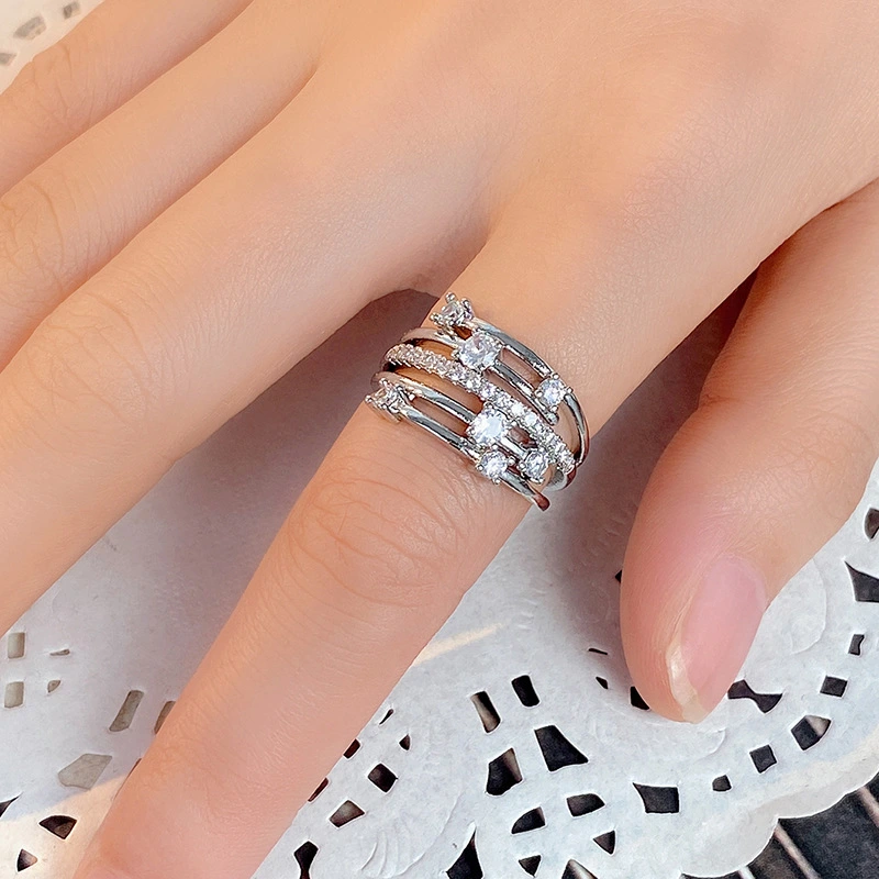 Vente chaude en Europe et en Amérique, nouvelle bague en zircon micro-incrustée de diamants étincelants, bague pour femme en croix de ligne créative