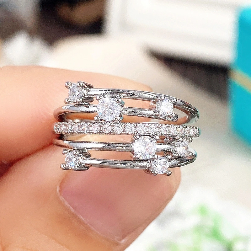 Bague de luxe européenne et américaine, bague en zircon œil de cheval à la mode, bague d'index à design creux multicouche