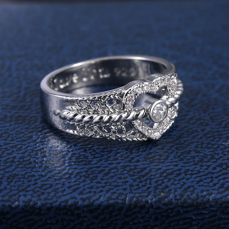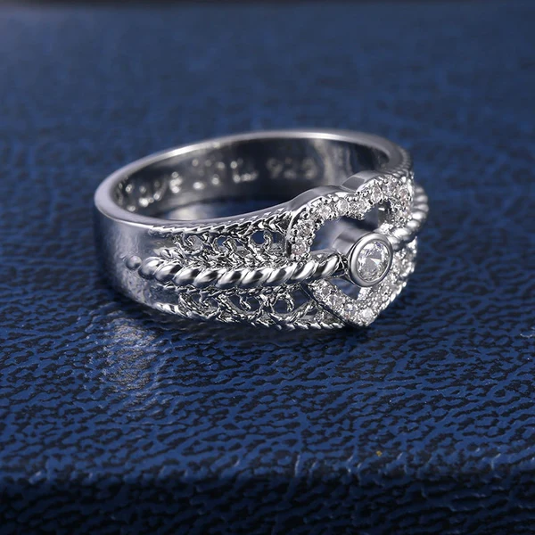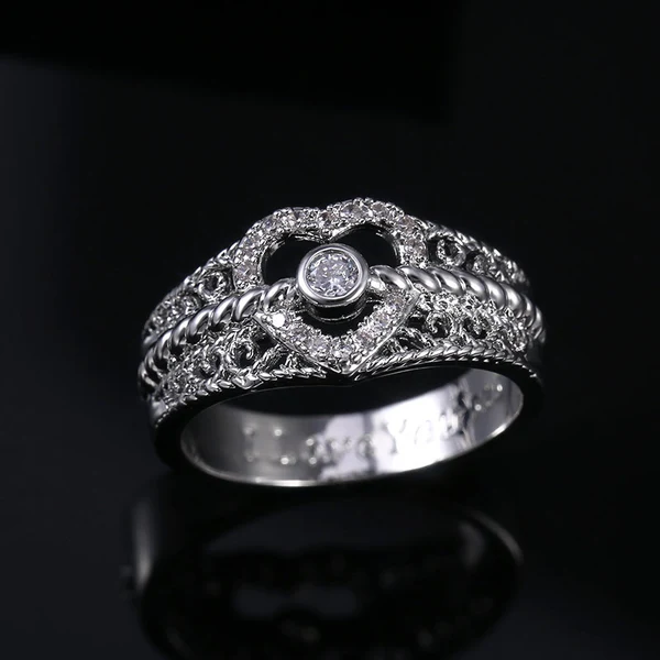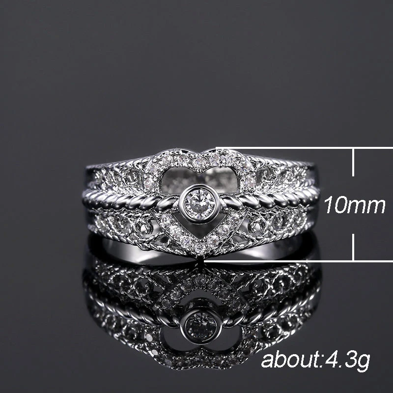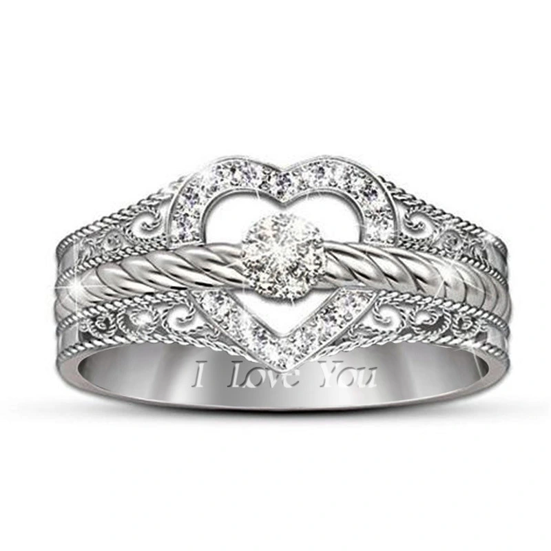 Vente chaude en Europe et en Amérique, nouvelle mode creuse sculptée plein diamant coeur couple bague cadeau d'amour