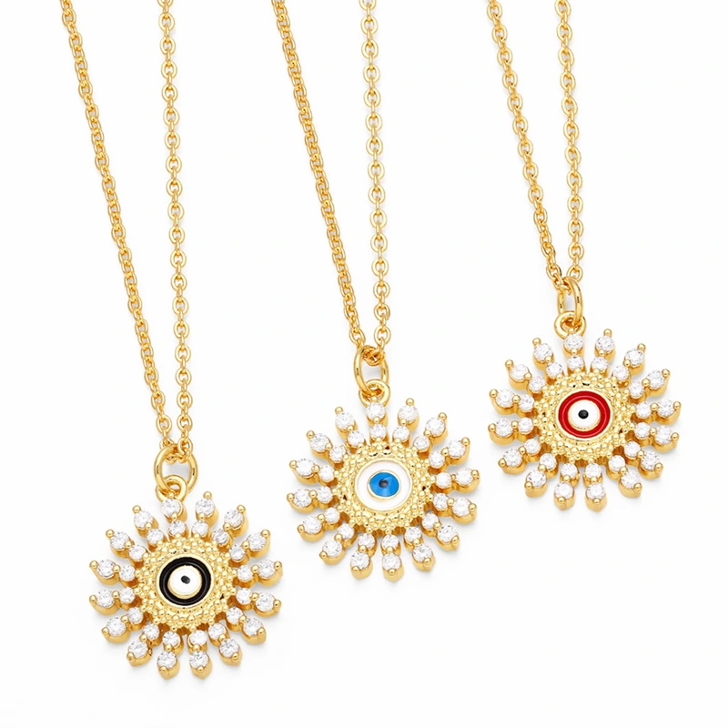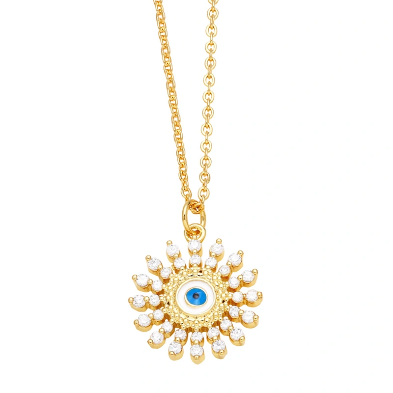 Vente de liquidation de bijoux européens et américains, collier pendentif œil du diable en or 18 carats plaqué cuivre et diamants, vente en gros nkq24