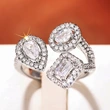 Bague de luxe européenne et américaine, bague en zircon œil de cheval à la mode, bague d'index à design creux multicouche