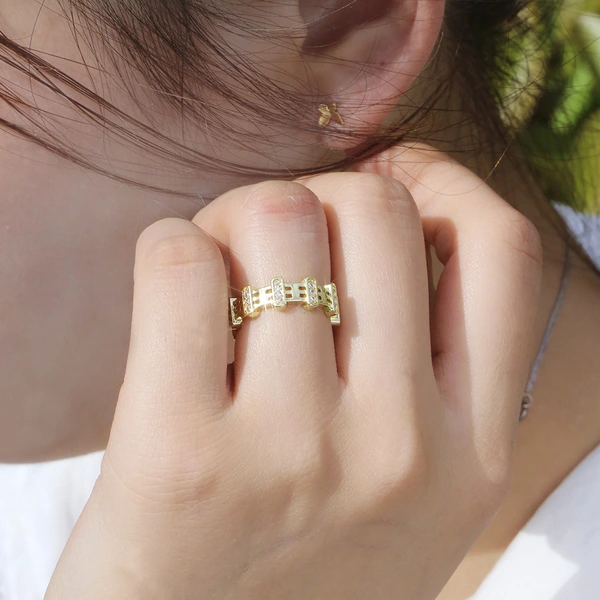 Bague de luxe européenne et américaine, bague en zircon œil de cheval à la mode, bague d'index à design creux multicouche