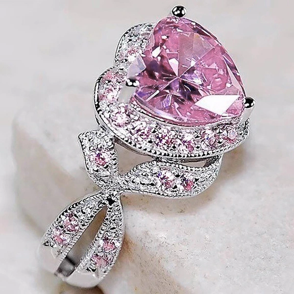 Version coréenne de la bague Sweet Love pour femme, style fée rose avec nœud papillon, en forme de cœur