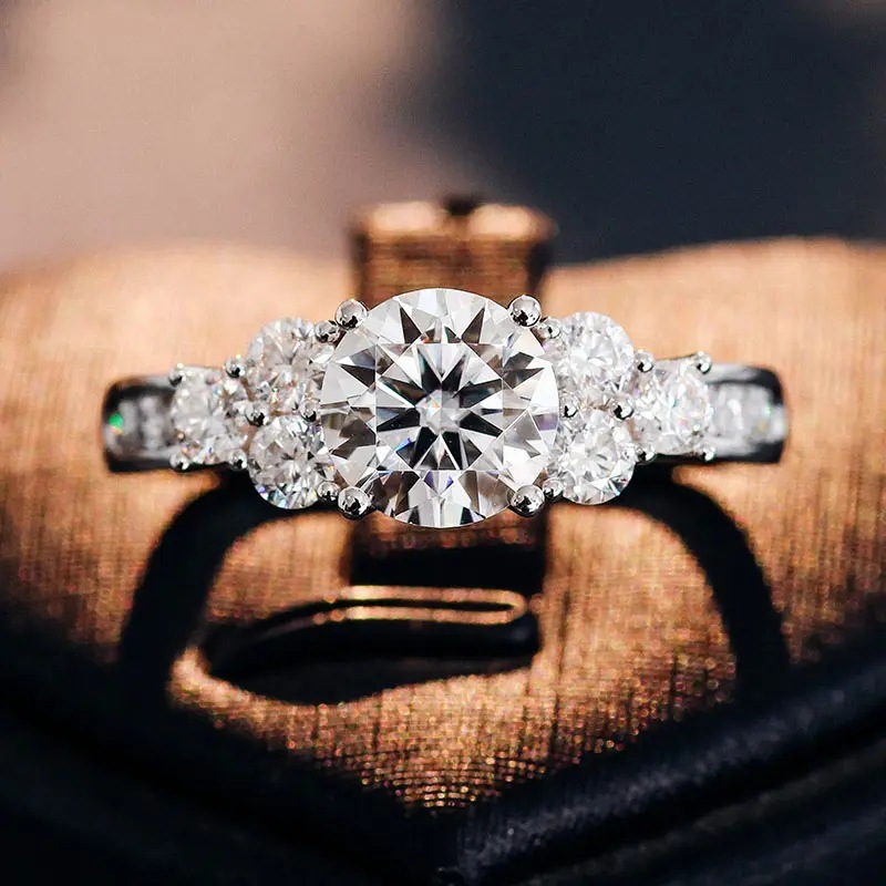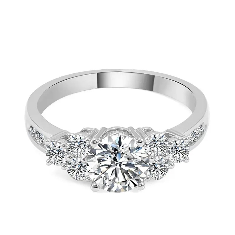 Micro-inlaid celebrity style classic all-match popular ring six-claw zircon wedding ring European and American style light luxury ring
