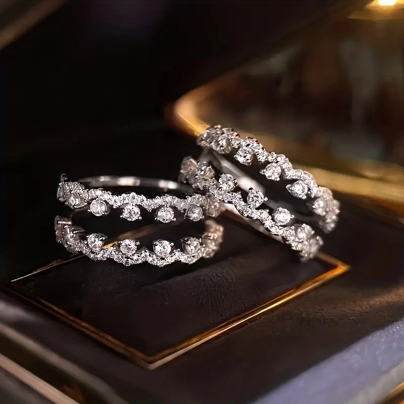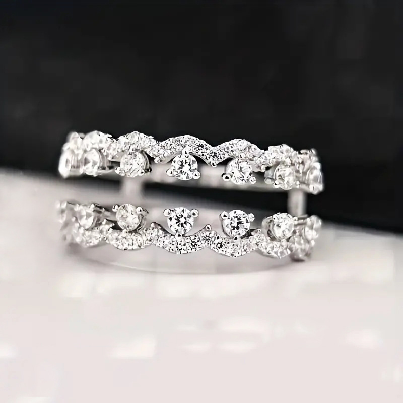 French lady exquisite and elegant ring female double-layer design sparkling zircon jewelry daily matching jewelry
