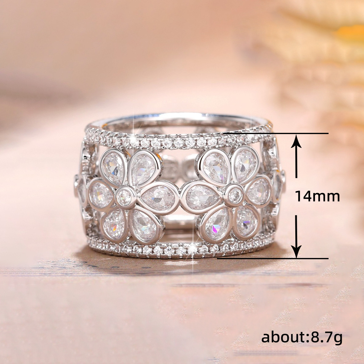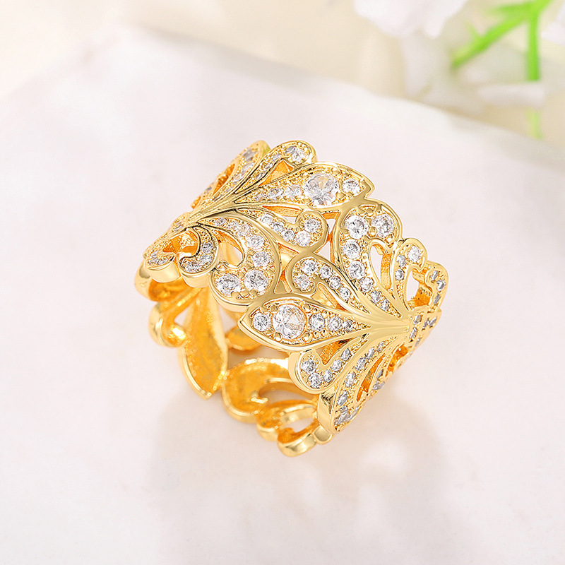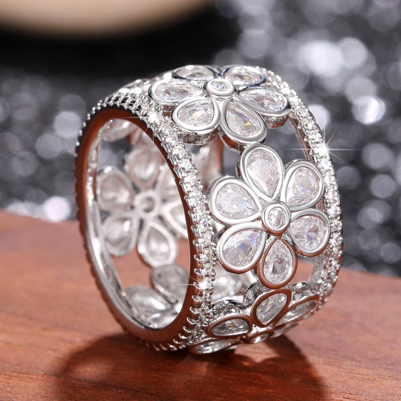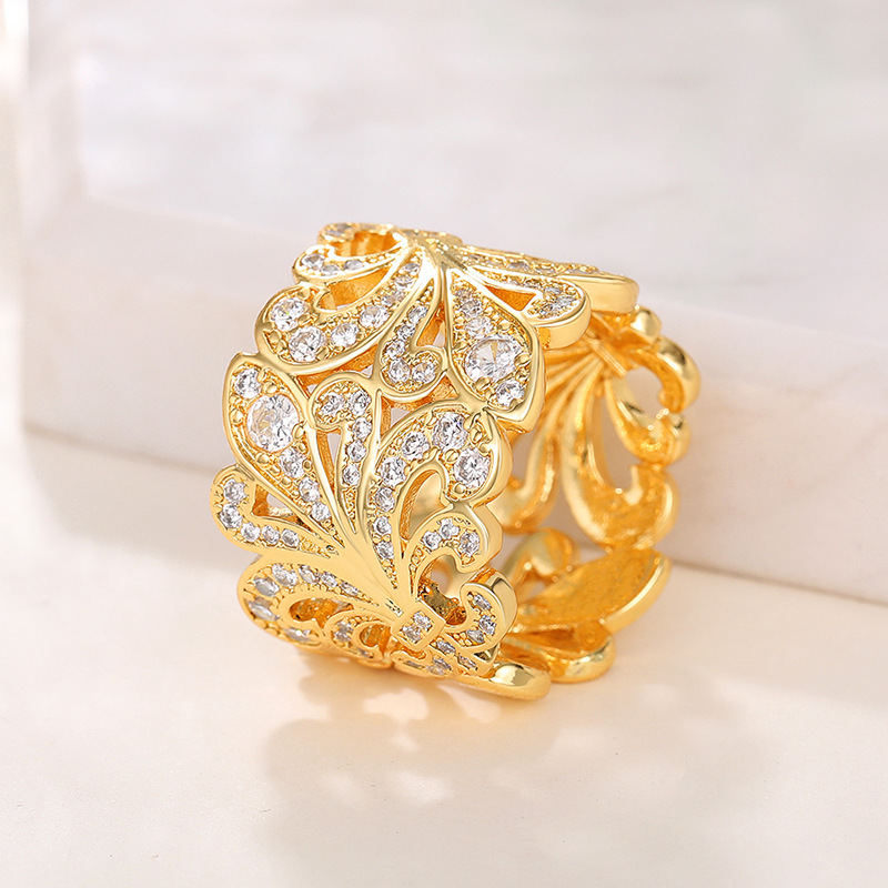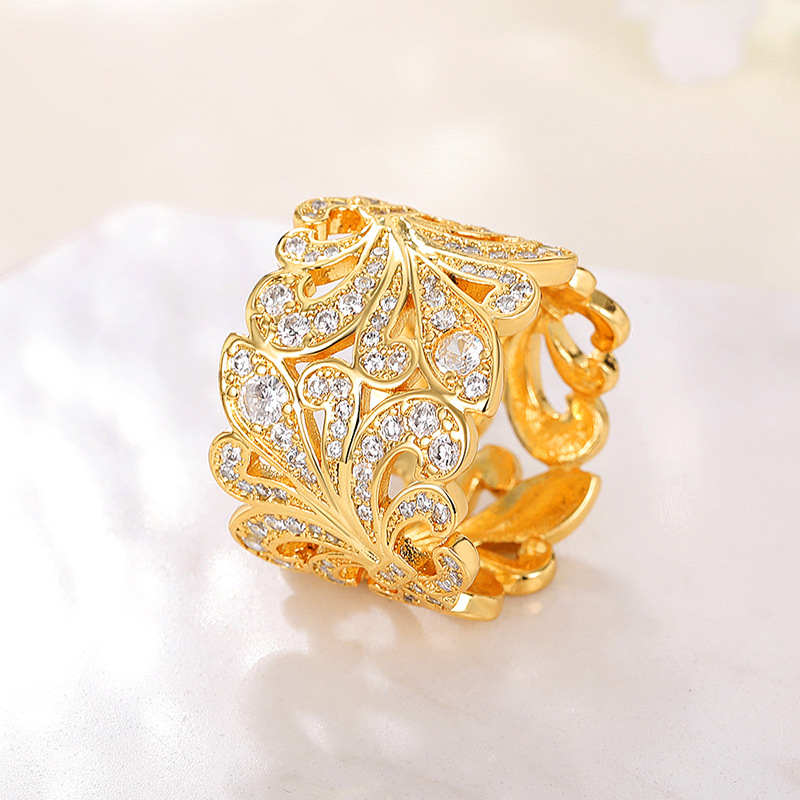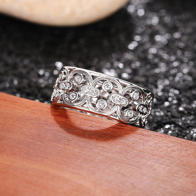 French light luxury hollow palace ring small fresh flower index finger ring natural snowflake high-end ring