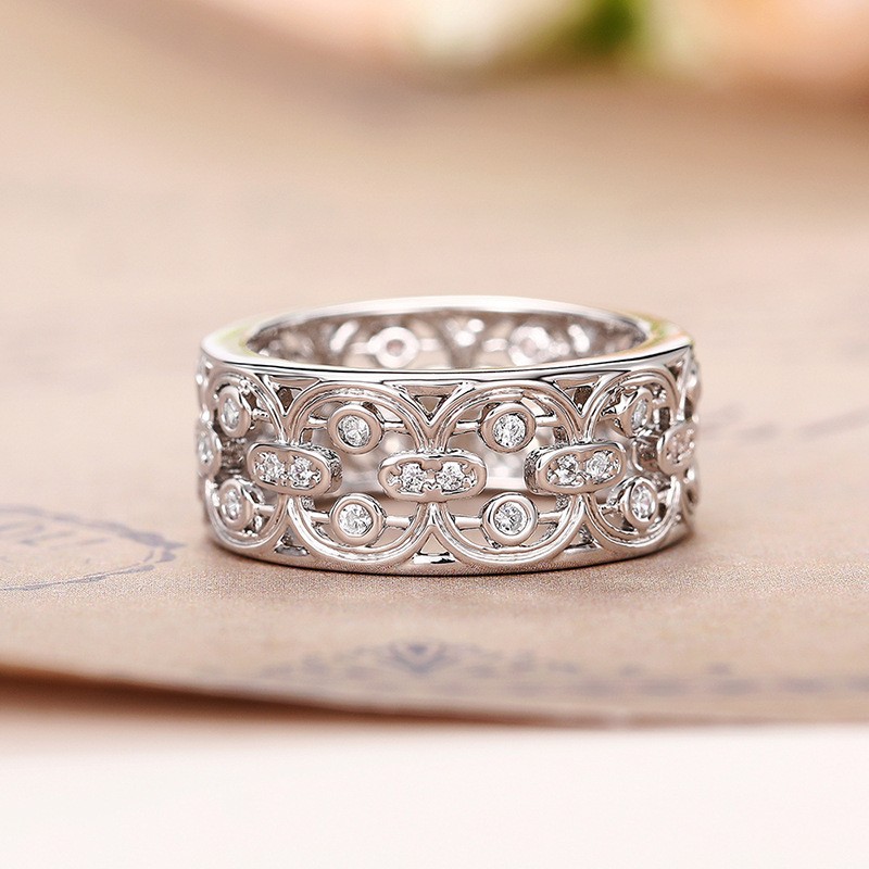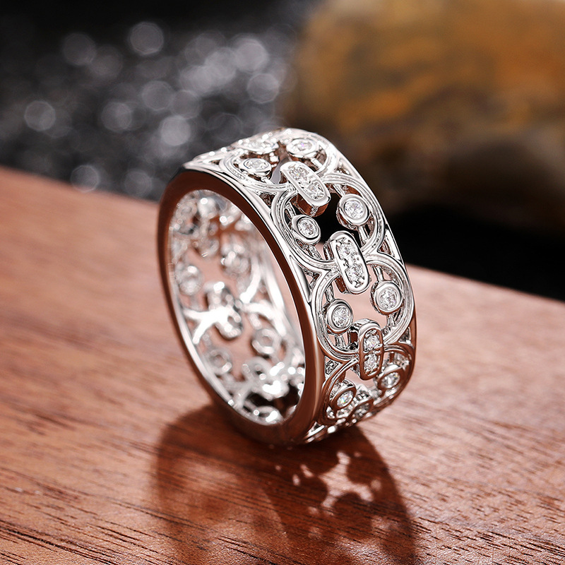 Micro-inlaid celebrity style classic all-match popular ring six-claw zircon wedding ring European and American style light luxury ring