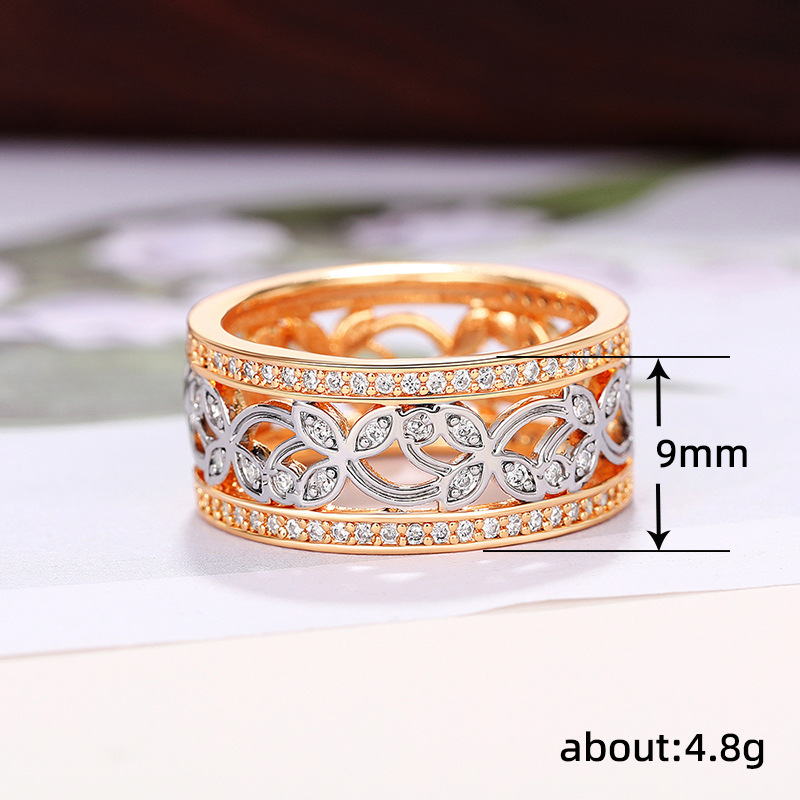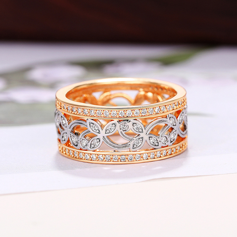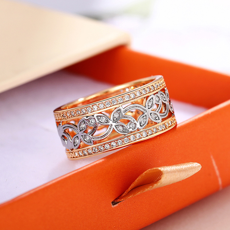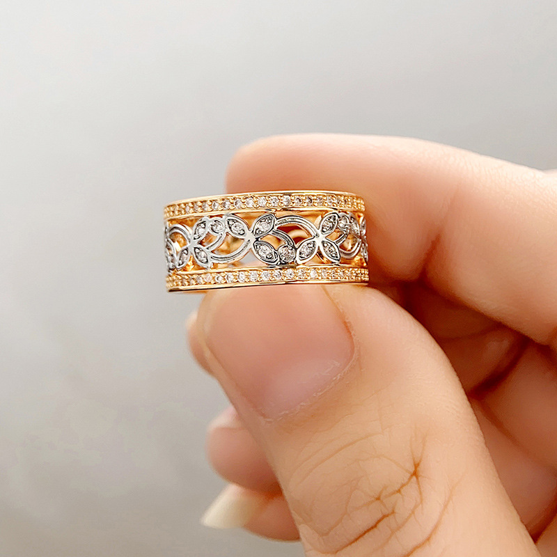 Classic four-claw imitation zircon micro-inlaid ring women's double row two-color twist arm ring engagement wedding ring women