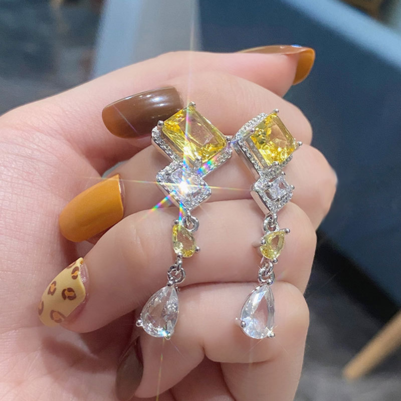 French light luxury square diamond tassel earrings for women niche design internet celebrity inlaid zircon earrings temperament accessories