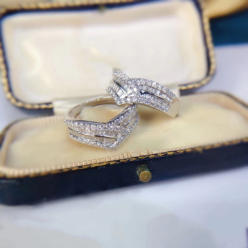 New zircon ring hollow cross four claws fashion design proposal wedding ring birthday gift ring