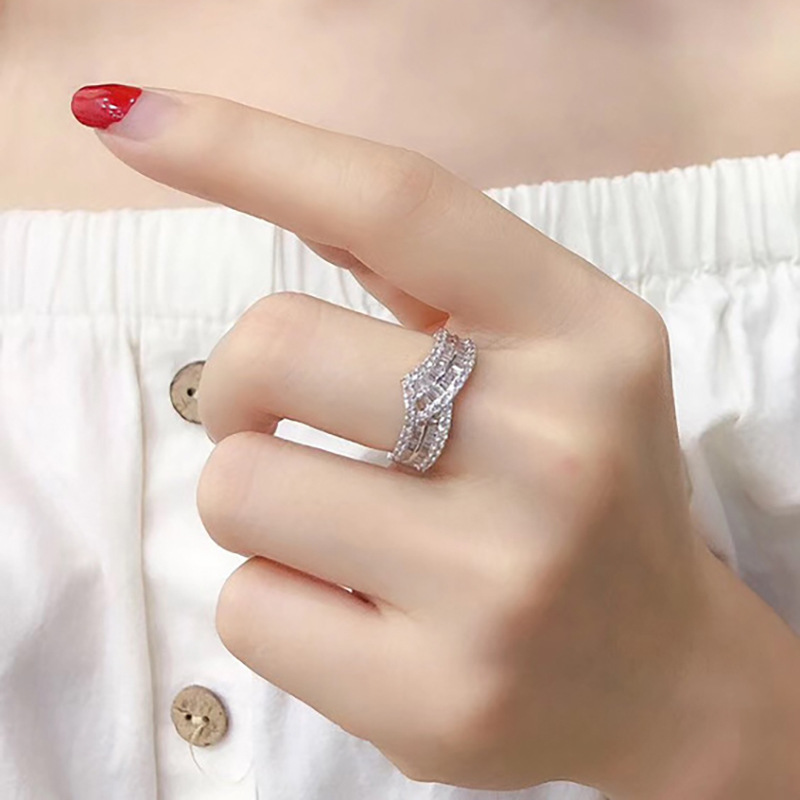 European and American luxury design ring fashionable temperament horse eye zircon ring multi-layer hollow design index finger ring