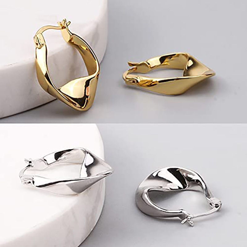 French retro high-end earrings, cool geometric twist earrings, metallic twist earrings