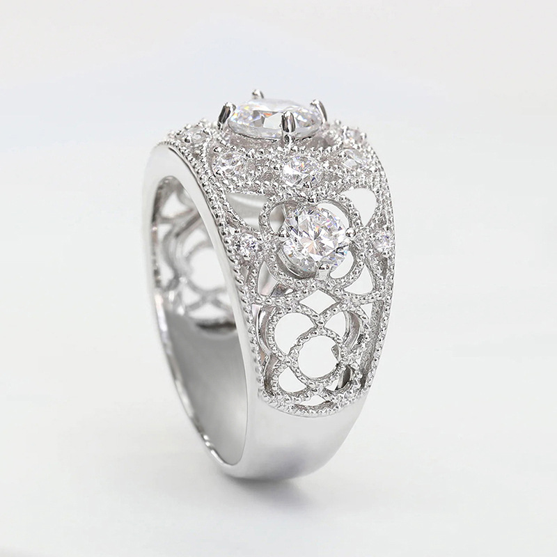 New zircon ring hollow cross four claws fashion design proposal wedding ring birthday gift ring