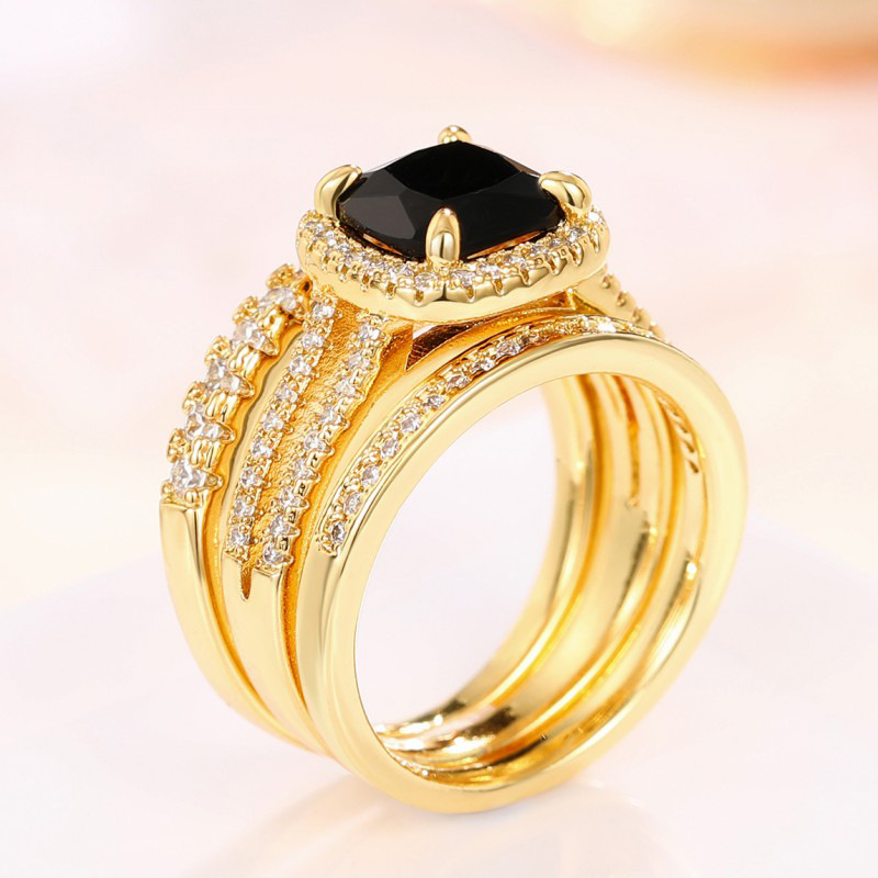 French retro luxury temperament ring square men and women same style live set ring trendy men's personality three sets of rings