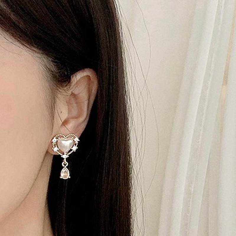 French retro palace earrings Korean temperament simple girl earrings love water drop imitation pearl earrings
