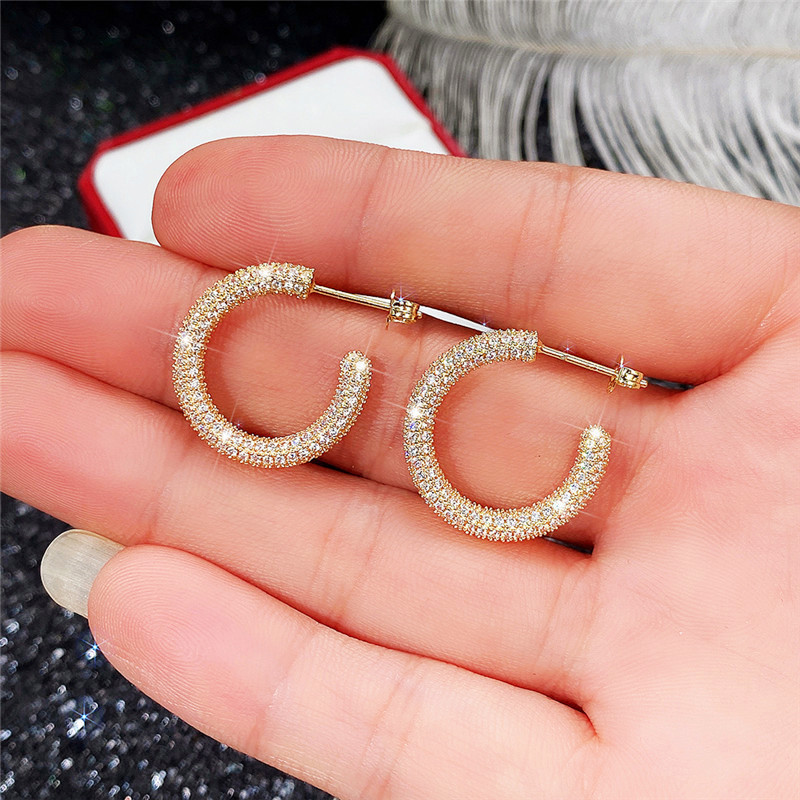 French style high-end earrings with full diamonds, super shiny retro copper earrings, metal trendy personality earrings
