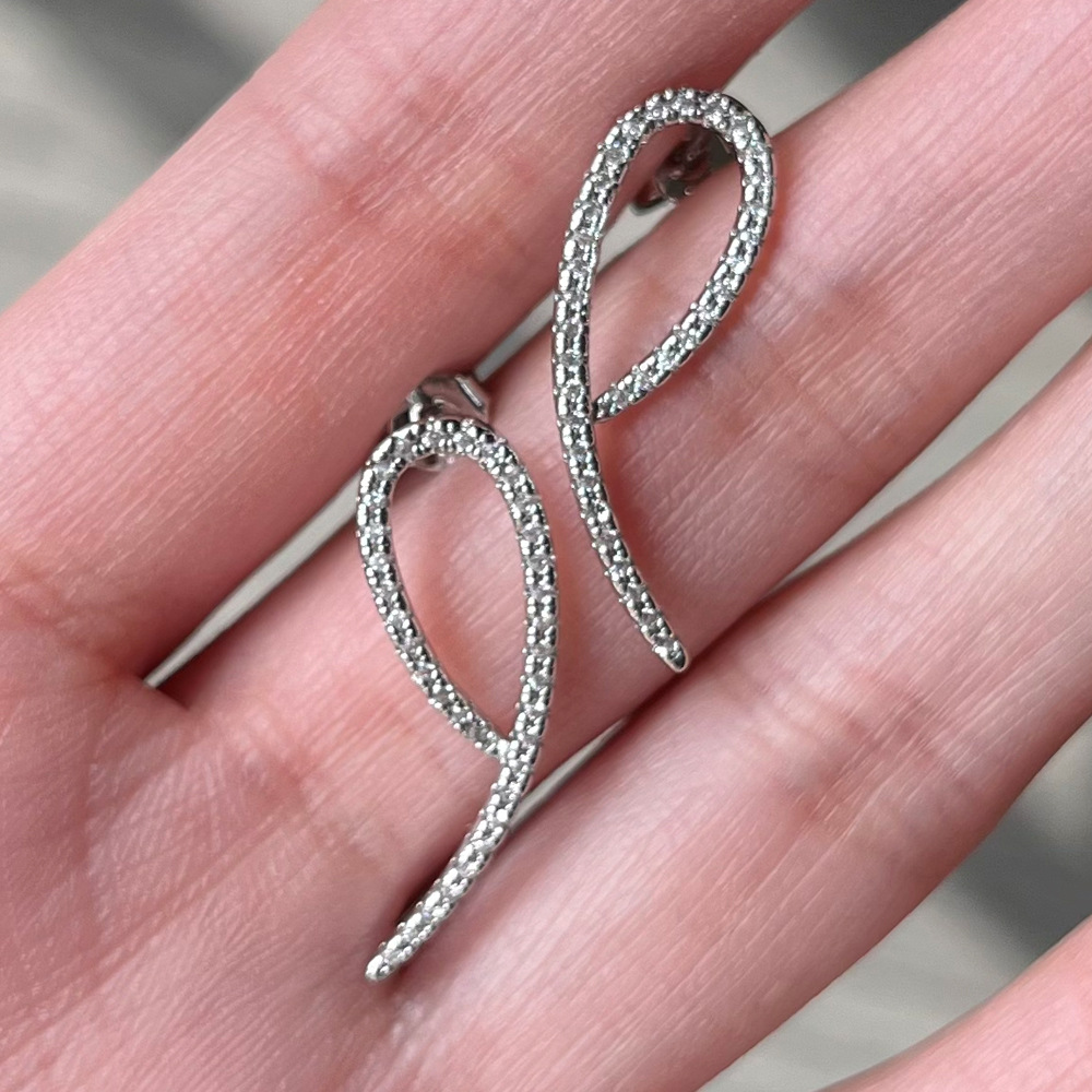 Full diamond spiral simple geometric line cross earrings for women European and American style all-match earrings