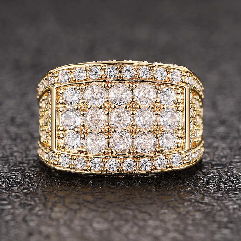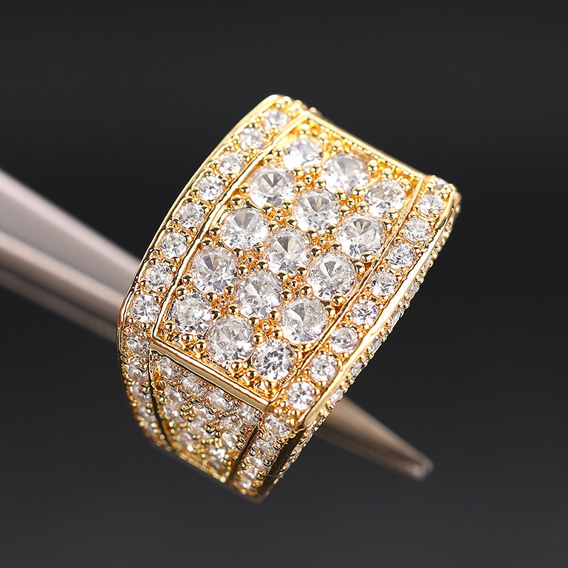 Fully inlaid temperament heavy work high-end ring square geometric jewelry shiny trend bling niche