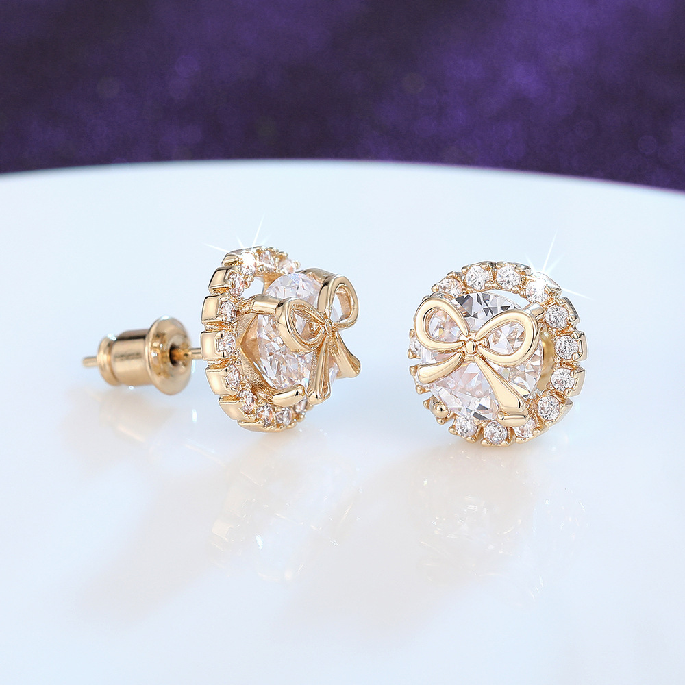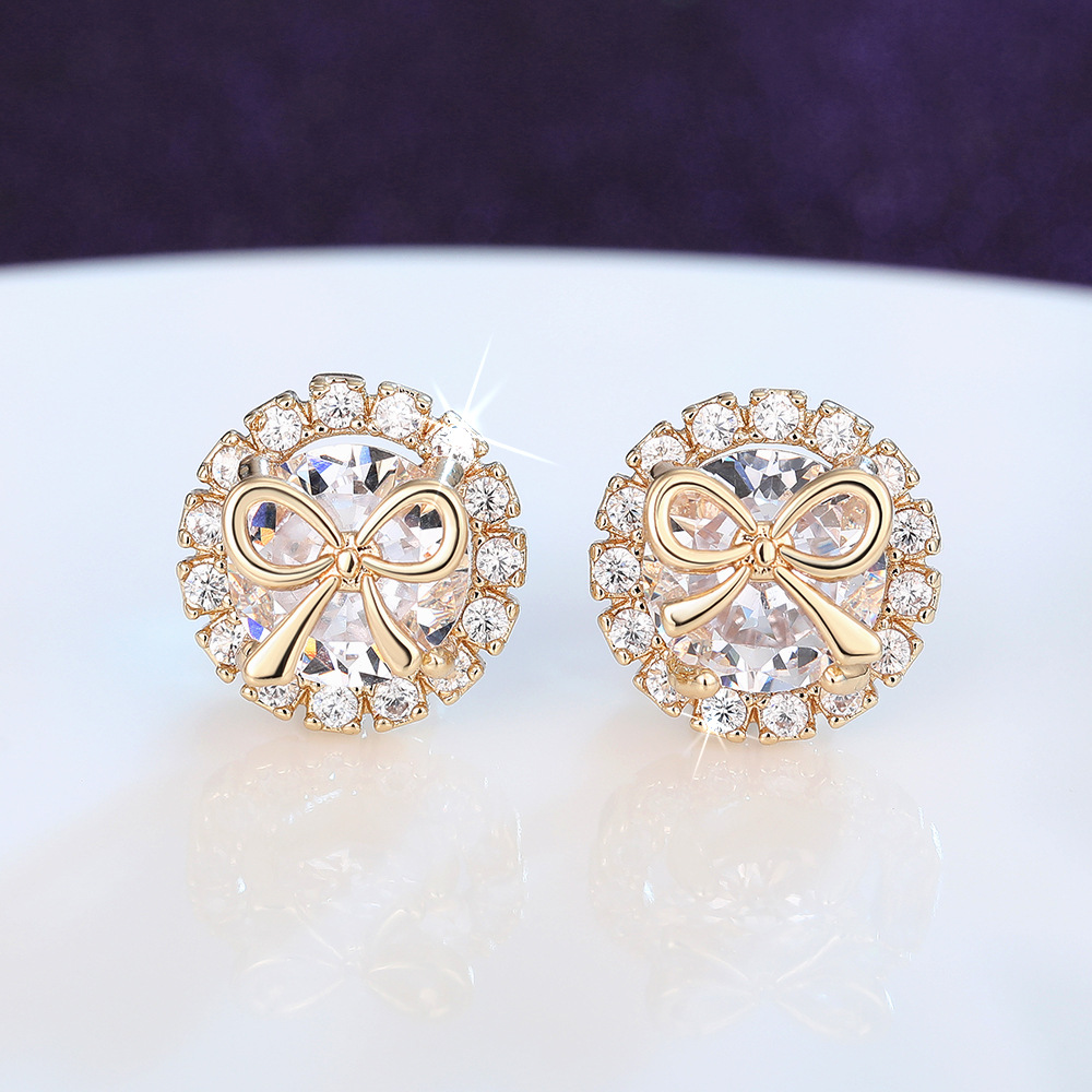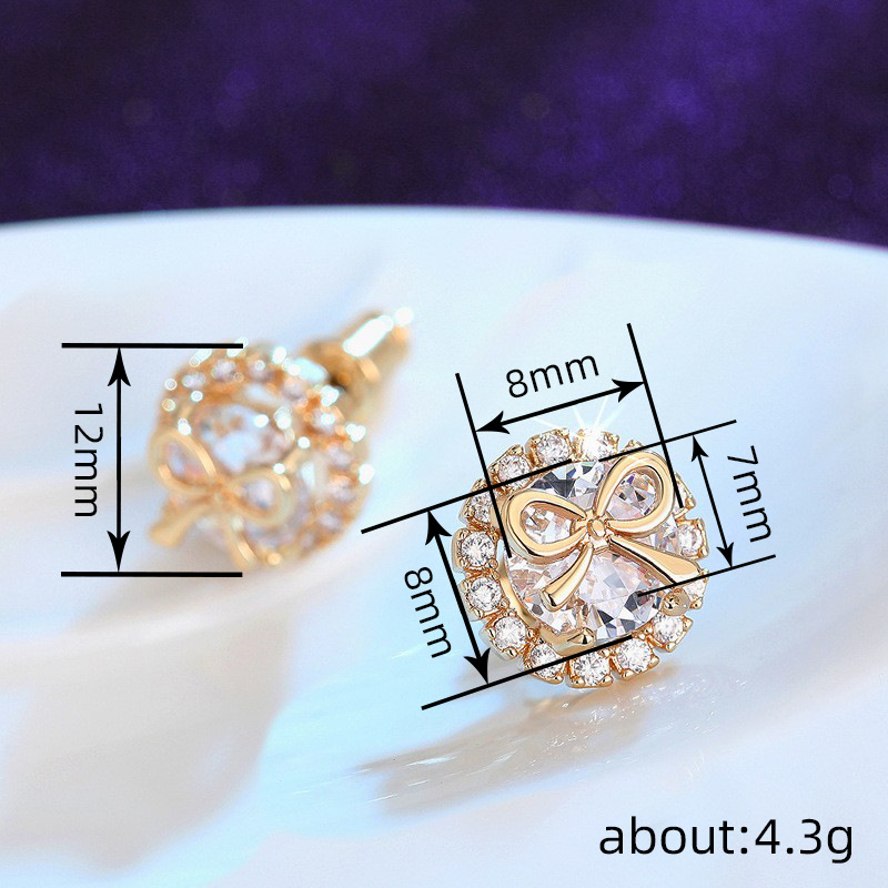 Gentle ball bow earrings, sweet daily matching accessories, micro-inlaid zircon jewelry