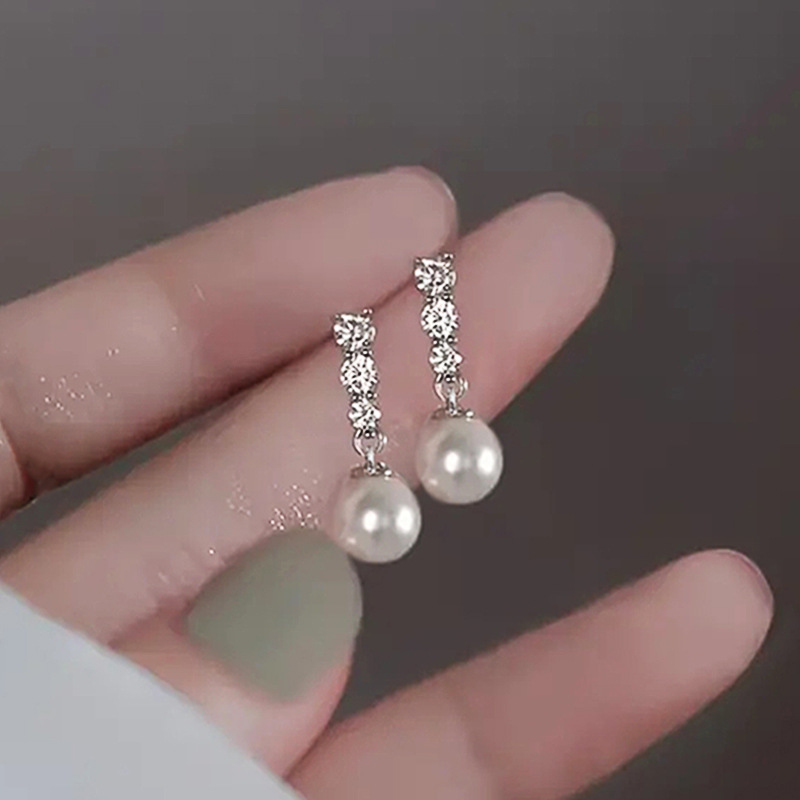 Gentle lady imitation pearl earrings female geometric round zircon jewelry elegant and fashionable lady style earrings